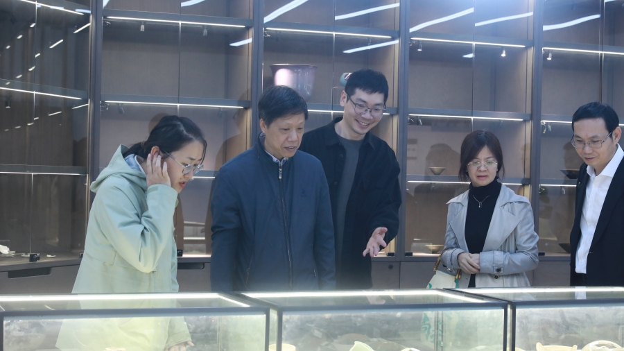会前,施俊天一行参观了学校“大考古创新研究中心”展厅。