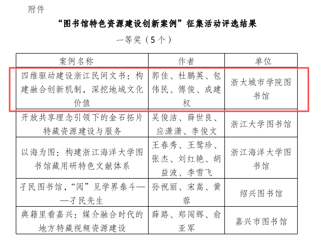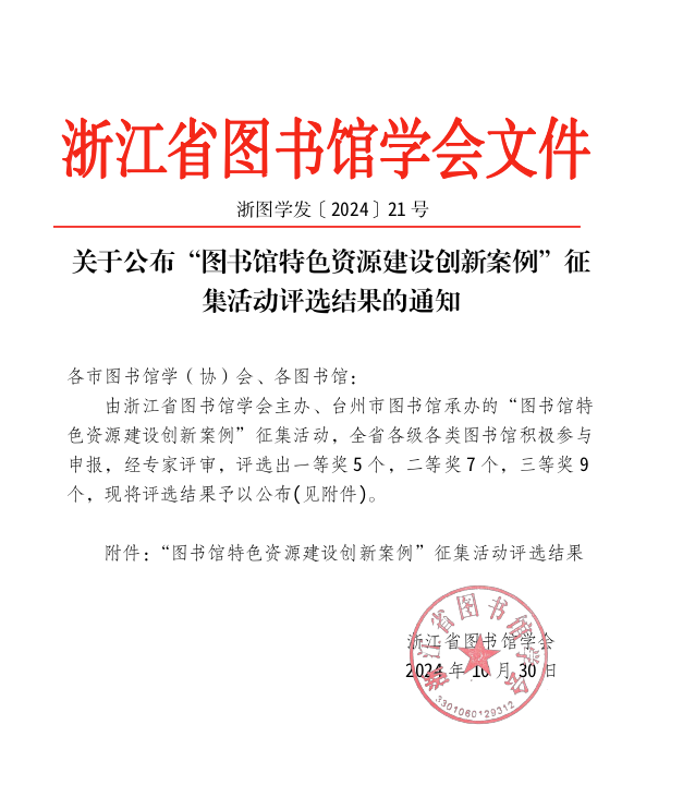 据悉,此次征集活动由浙江省图书馆学会主办、台州市图书馆承办,旨在进一步发掘我省图书馆在特藏文献建设与服务、特色资源开发和利用、文化资源融合和共享模式探索、文献资源与全民阅读创新结合以及实践中探索形成相关新内容、新形态和新成果等方面案例,从中汲取智慧并进行推广,使蕴含价值的文献资源为大众所知所用。