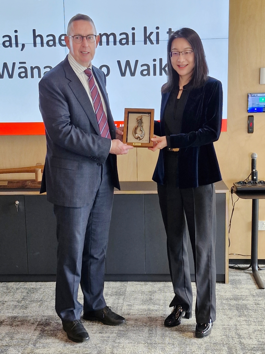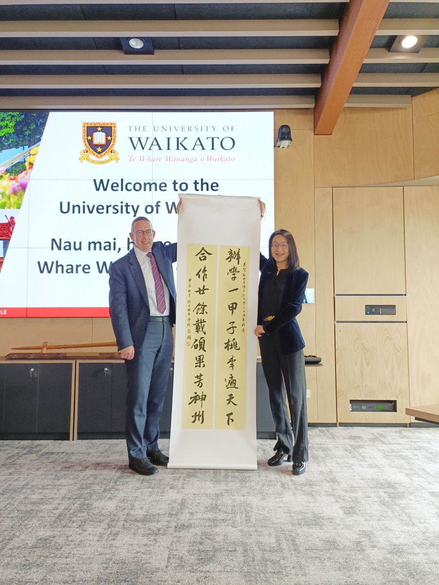中新双方对新西兰UW学院在各方面取得的显著成效给予高度评价。尼尔·奎格利指出,今年是怀卡托大学建校60周年,这一重要时刻为两校未来合作提供了新的契机。他回顾了双方20余年合作所取得的丰硕成果,期待在新的历史节点上,两校能够继续精诚合作,实现共赢发展。杨波表示,将积极拓展两校在学生培养、科研合作和文化交流等方面的合作深度,进一步推动两校成为中新两国友谊和教育合作的重要桥梁。