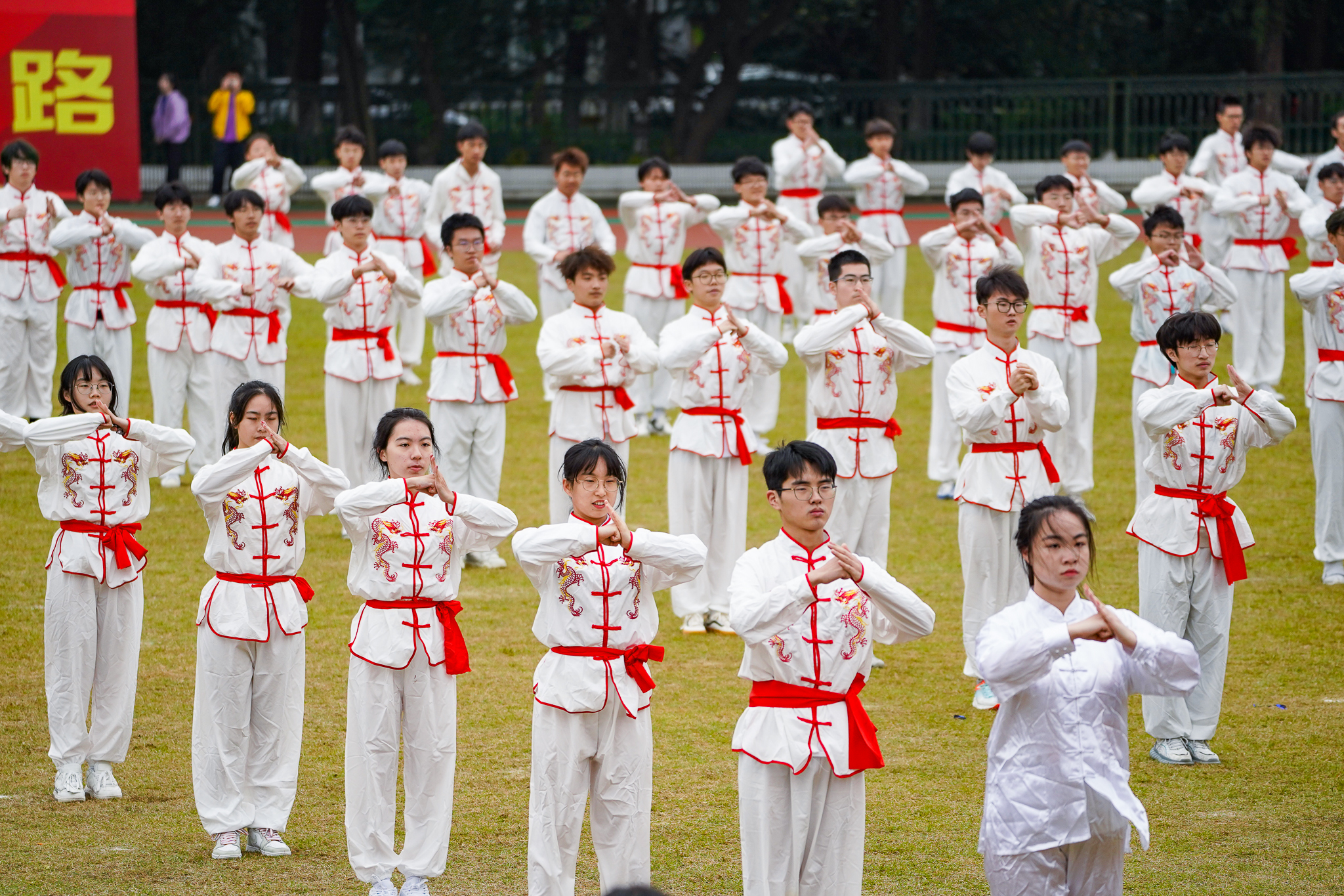 铿锵有力的音乐响起,穿着各色院服的城院学子编织出了蓝天之下最靓丽的风景线。健美操和广播操队列规整、动作整齐,这恰到好处的力度与极强的节奏律动互相融合,刻画出少年风华正茂的最美姿态。